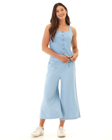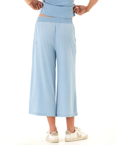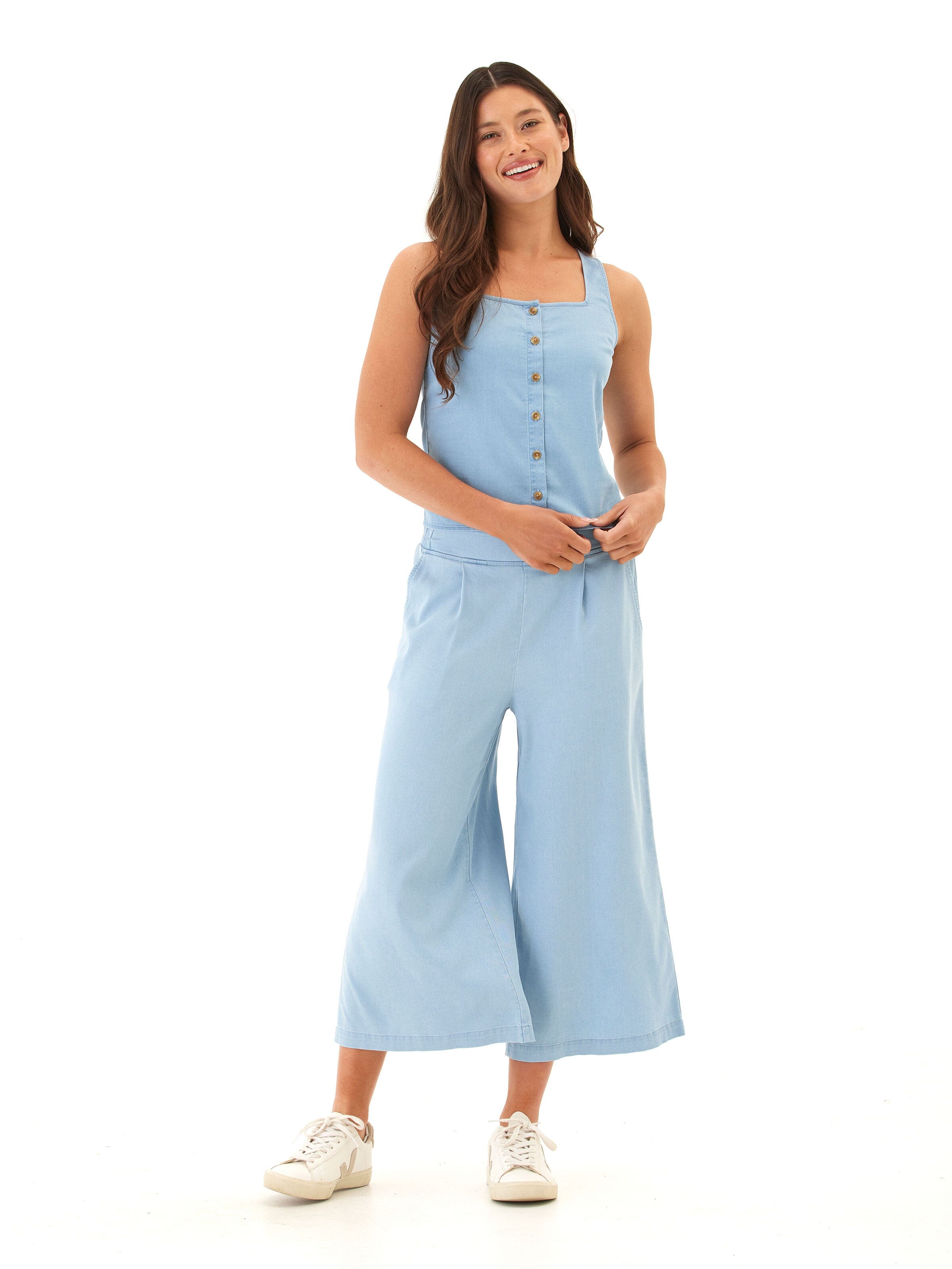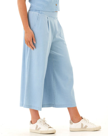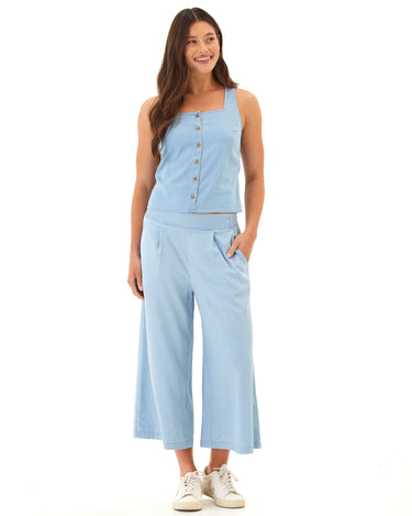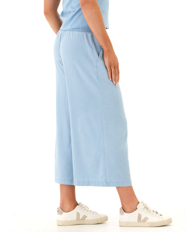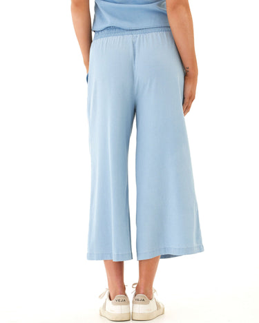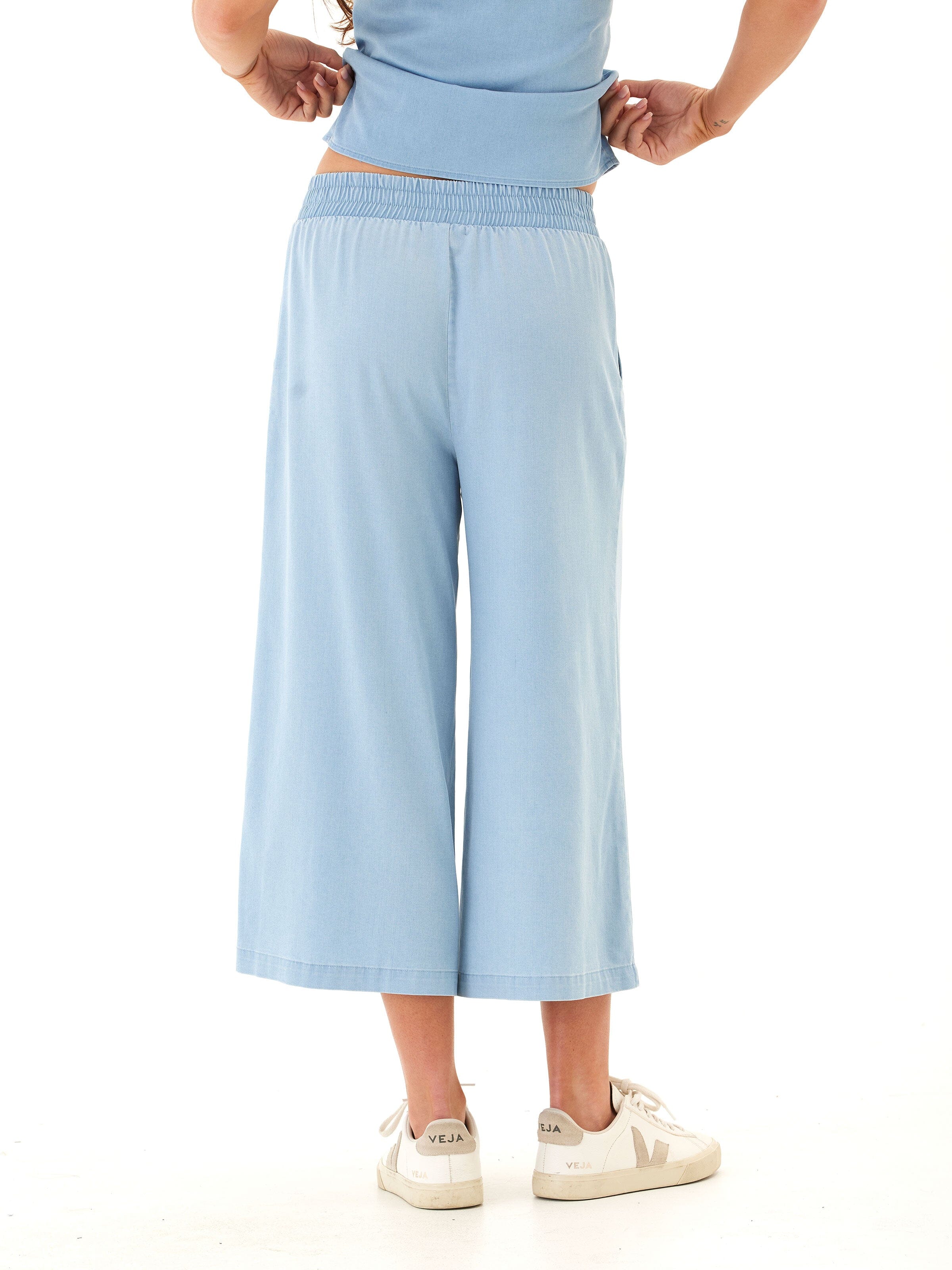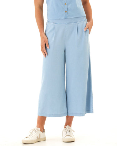 This cropped wide-leg pant is crafted from our soft and stretchy chambray for an ultra-comfortable fit that still looks polished. Designed with subtle pleats, a flat front waistband, and side pockets for everyday ease—perfect for dressing up or keeping casual.