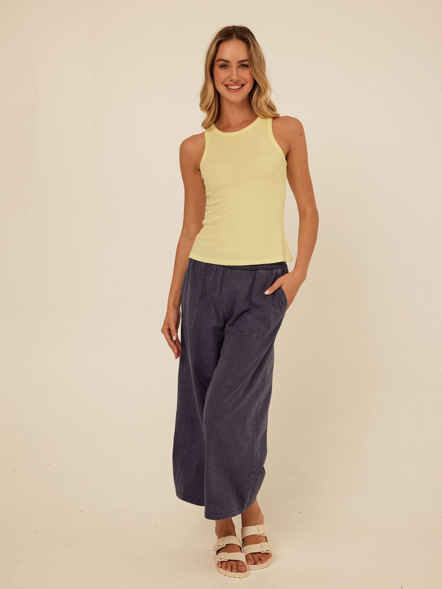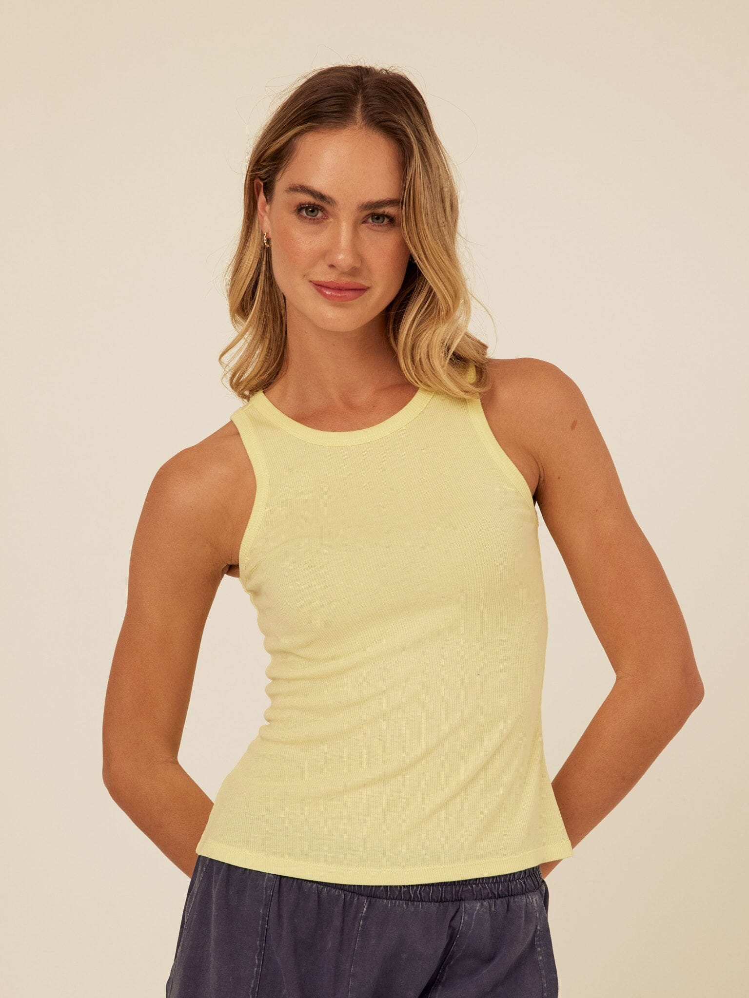 Our super soft and stretchy Bailey Feather Rib Tank is a wardrobe staple, perfect for layering or worn on its own. Featuring a relaxed and flattering fit, rib detail, and high neck.