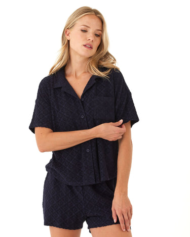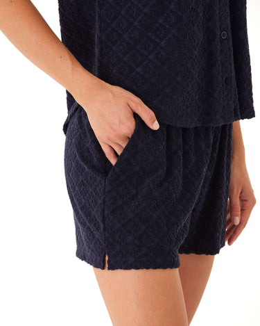 Textured, breathable, and effortlessly cool—these shorts are made from our soft jacquard terry fabric for an elevated take on casual comfort. Featuring an easy elastic waistband and side pockets, they’re perfect for warm days, laid-back lounging, or pairing with the matching top for a coordinated look.