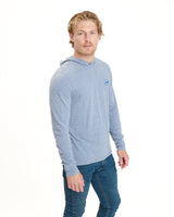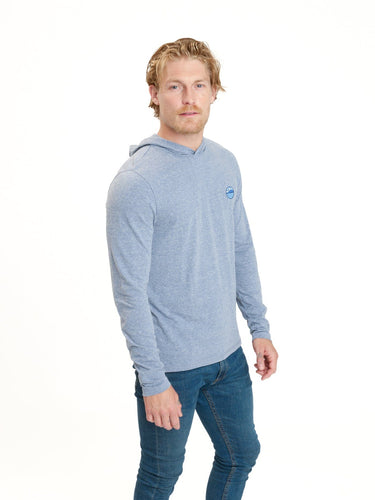 Made from our most popular jersey fabric, the eco-triblend, this long sleeve tee shirt pullover hoodie is the perfect year-round layering item to throw on over a tee or under a blazer.