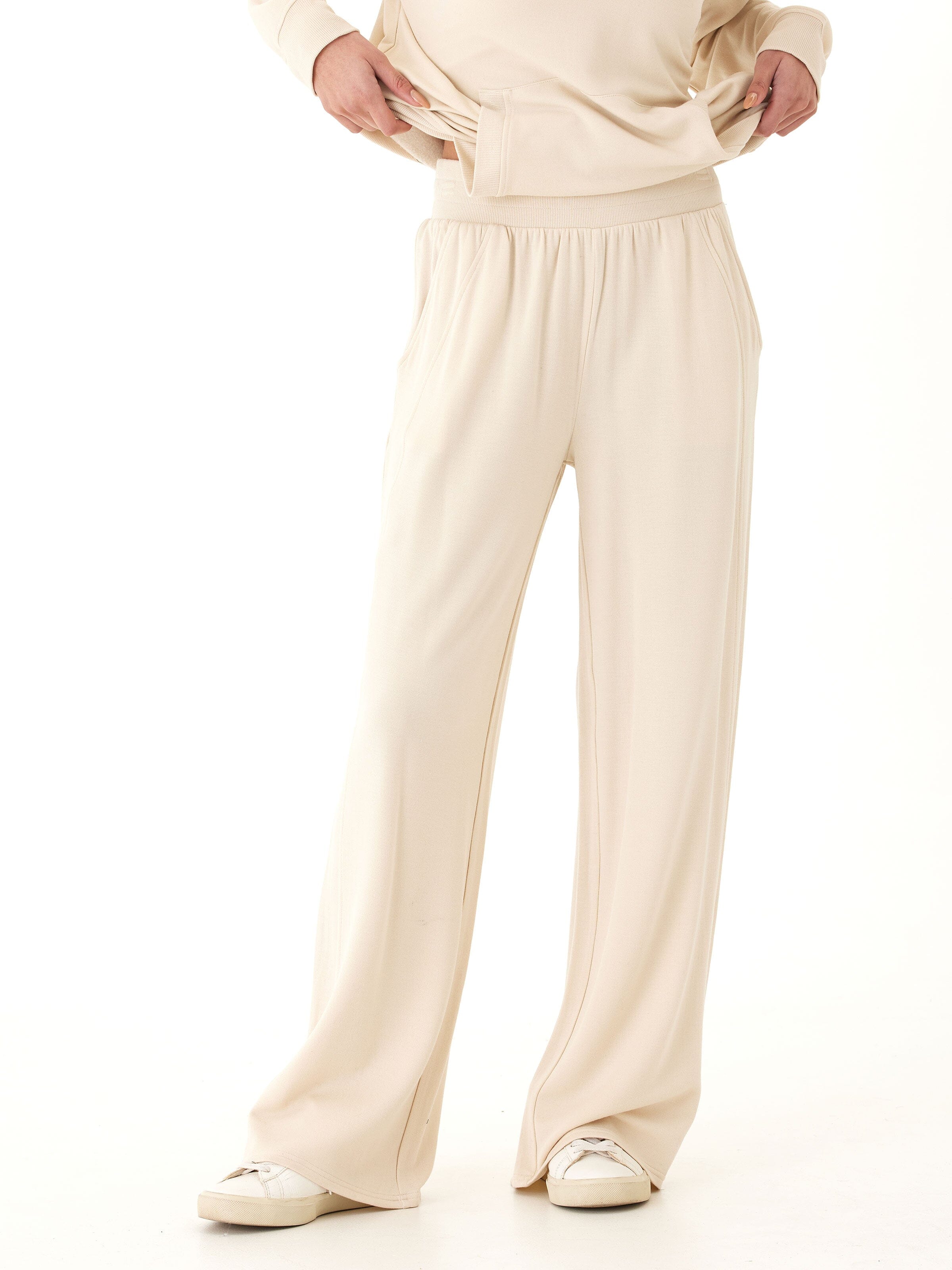 Slip into everyday ease with these wide leg pants, crafted from our signature Feather Fleece for a cloud-soft feel. Designed with a flattering wide waistband, flowy drape, and side pockets for added function, this pair blends laid-back comfort with polished style. Perfect for lounging in or stepping out.