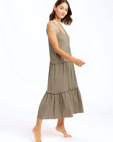 Made from 100% Organic Cotton, our Gauze collection is sustainable and soft. The Gina dress is flowy and features an elegant tiered design.
