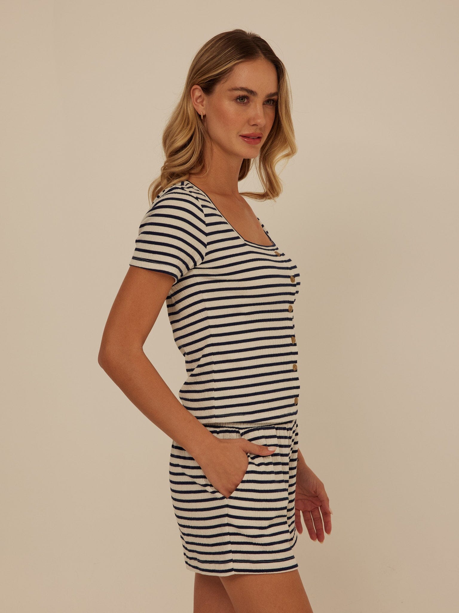 Pair it with the matching shorts or your favorite denim for an effortless look made for warm days and easy weekends.