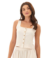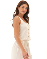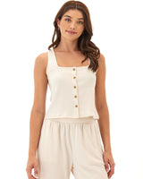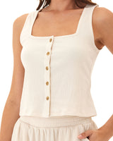This button-front tank features a flattering square neckline and is made from soft, textured fabric for a breezy, lightweight feel. Effortlessly stylish and easy to pair with anything, it's a warm-weather staple you'll reach for on repeat.