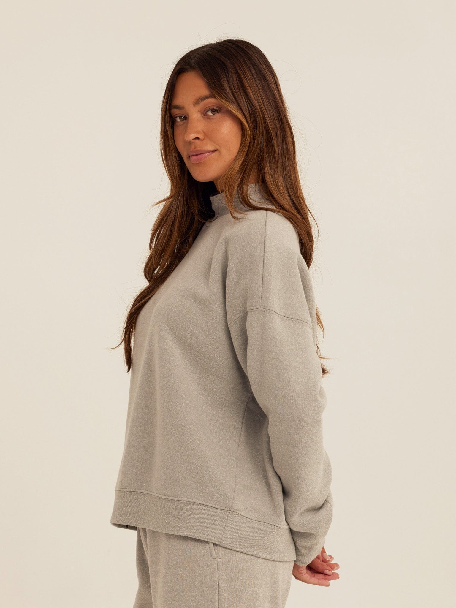 An easy layer that delivers warmth without the weight. The Karlie Mock Neck Pullover is made from our best-selling Triblend Fleece for a soft, lived-in feel that’s comfortable all day long. Designed with a relaxed fit and subtle mock neck, it adds a polished touch to your everyday routine—perfect for mornings on the go, casual plans, or slow weekends. Finished with ribbed trim for structure and ease, this is the kind of throw-on piece you’ll reach for again and again.