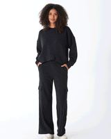 Experience the ultimate comfort in our Kienna Triblend Fleece Cargo Pant. An elevated version of our best-selling triblend fleece jogger, this pant features a wide leg for added style and a thick elastic waistband for a comfortable fit. The cargo pocket details add functionality, while the super soft fabric ensures maximum comfort.