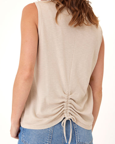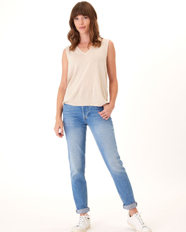 Upgrade your wardrobe with our Kinsley Textured Slub Jersey Top! The soft, relaxed fit will keep you comfortable all day, while the back detail adds a touch of elegance. Perfect for any occasion with its simple v neck.