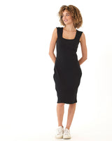 Crafted from ultra-soft, stretchy organic cotton rib, this versatile midi dress offers a flattering, form-fitting silhouette with all-day comfort. Featuring a modern square neckline and wide straps, it's the perfect balance of elegance and ease, whether dressed up or down.