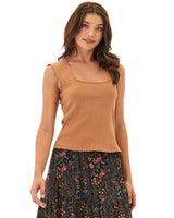 This ribbed knit tank features a modern square neckline and a flattering, body-skimming fit. Soft, stretchy, and easy to style, it’s a versatile staple for layering or wearing on its own.