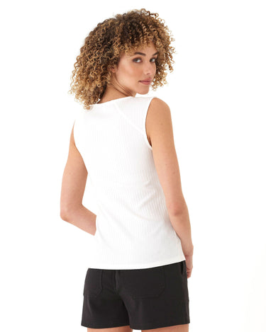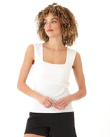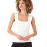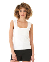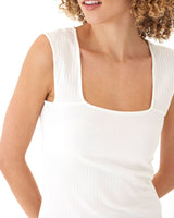 This ribbed knit tank features a modern square neckline and a flattering, body-skimming fit. Soft, stretchy, and easy to style, it’s a versatile staple for layering or wearing on its own.