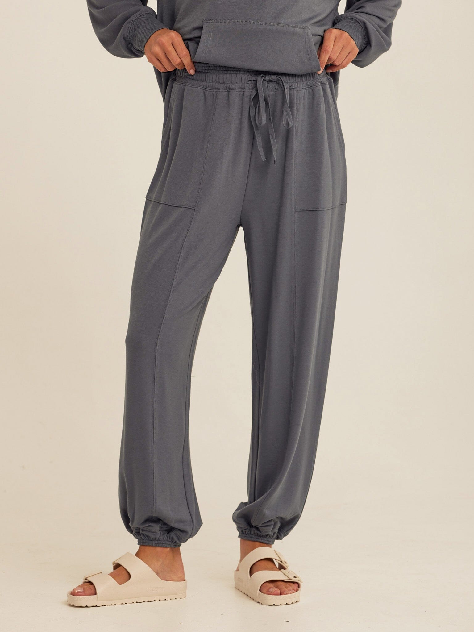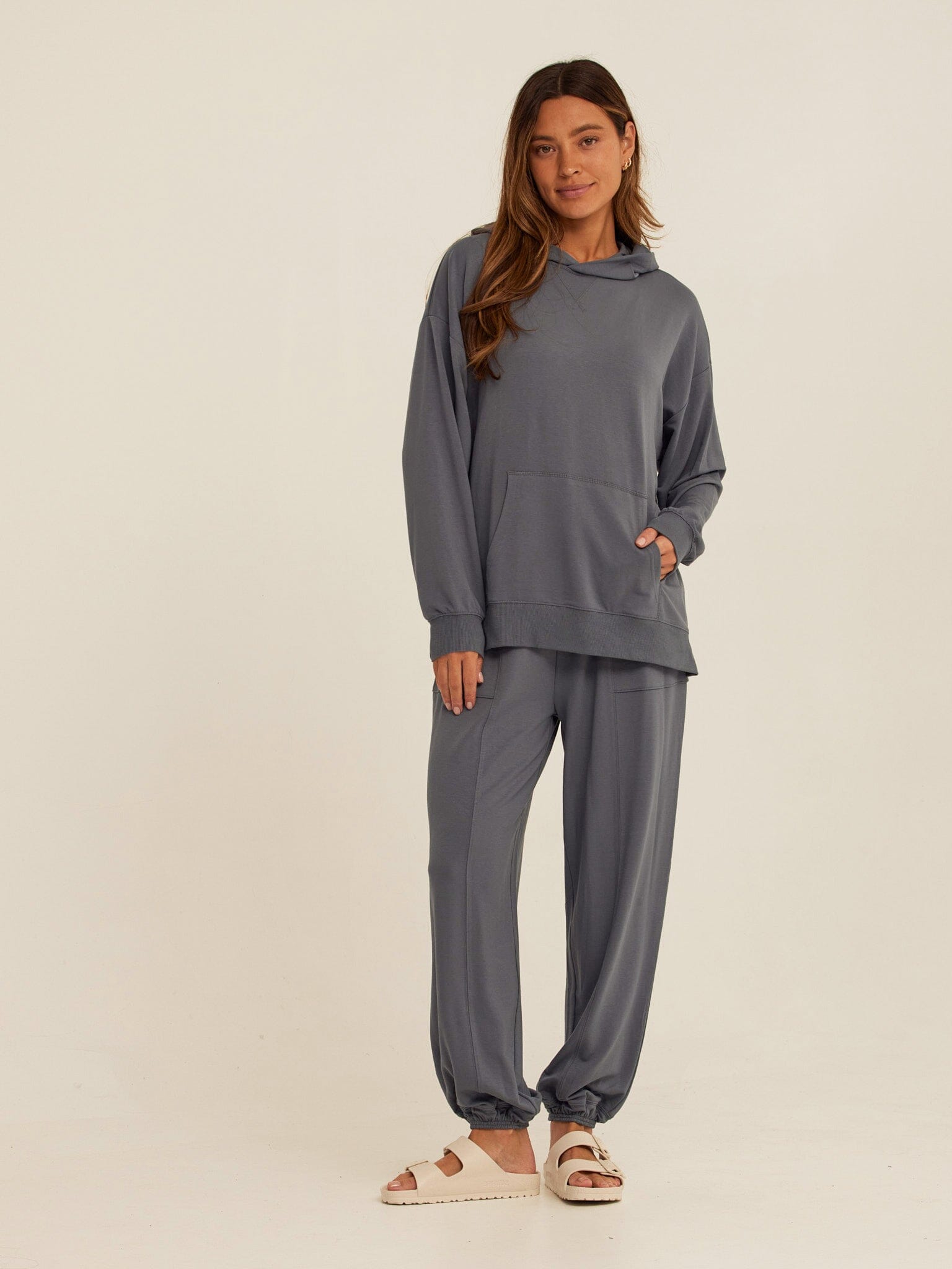 An easy jogger with a soft, drapey feel. The Lottie Modal Terry Jogger is made from smooth Modal Terry for lightweight comfort that moves with you. Designed with a relaxed fit, it features an elastic waistband with adjustable drawstring, side pockets, and elastic cuffs for a laid-back, everyday silhouette. Pair it with the matching Sylvie Oversized Pullover Hoodie for a coordinated set that’s perfect for lounging, travel days, and off-duty wear.