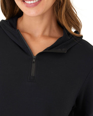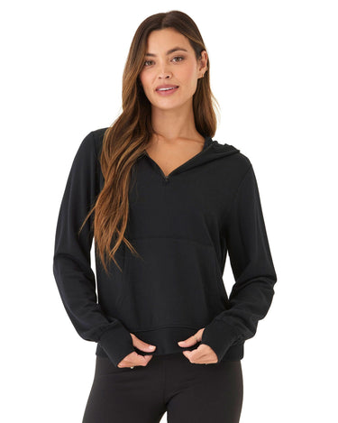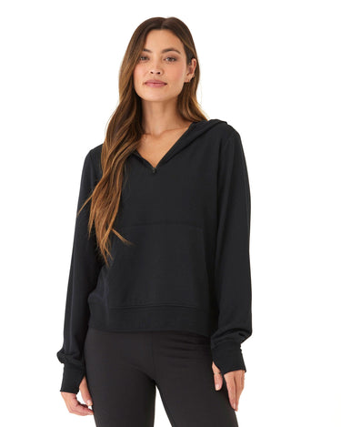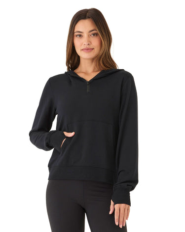 Introducing the Natia Feather Fleece 1/4-Zip Hoodie, our best-selling buttery soft fleece that offers a relaxed fit for all-day comfort. With thumbholes and a front pocket, this hoodie is perfect for a casual and cozy look.