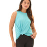 Really love this tank! It’s so soft, comfortable, and more stylish than a regular tank. The design in the front makes it look like it’s tucked in. I can wear it around the house as a pajama top without a bra, as a cute workout top with a sports bra and even dress it up for work (I have to wear a tank under it with a regular bra, because my bra shows a bit under the arm). The color is hard to see on the website. It’s very subtle blue-green and looks great with so many colors.