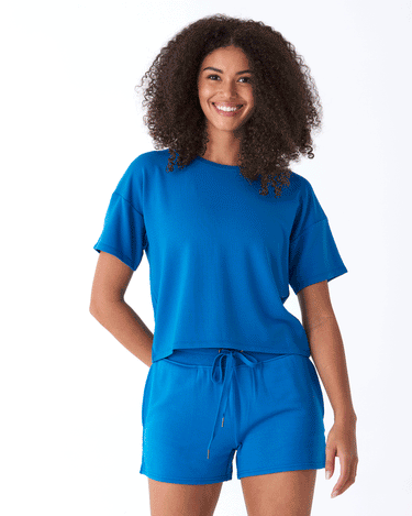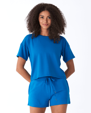 As comfy as it gets! The Drop Shoulder Crop Tee is a longer crop, meeting just at the top of your pants. Featuring a drop shoulder & a wide bottom hem.