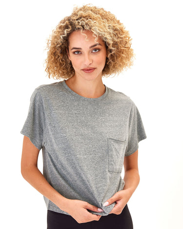 The Shelbie Tee is made from our super soft (and sustainable) blend of recycled polyester, organic cotton and rayon. We garment dye each one for a perfectly fitted ultra soft finish. This tee hits right at your high waist is perfectly paired with your favorite leggings, denim or shorts!