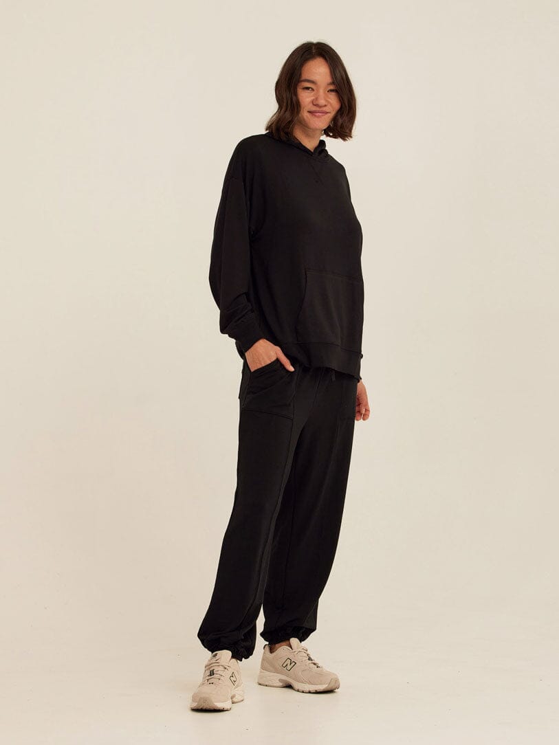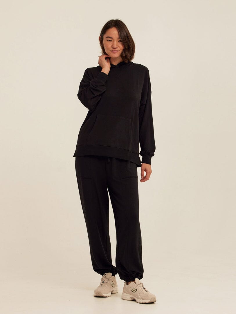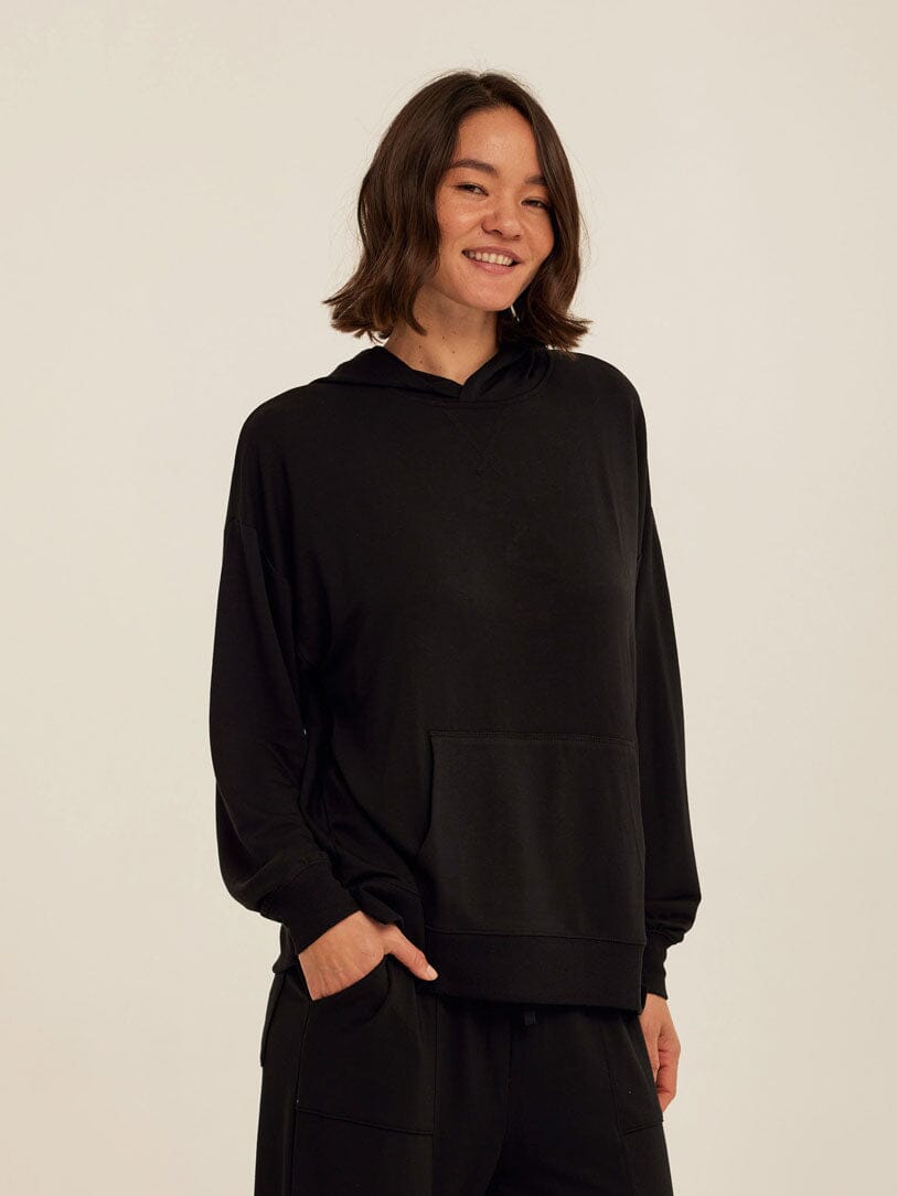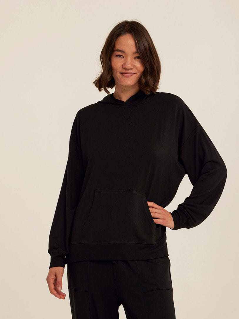 Soft, drapey, and easy to wear. The Sylvie Oversized Pullover Hoodie is crafted from smooth Modal Terry for a lightweight feel with an ultra-soft hand. Designed with an intentionally oversized fit, it features a relaxed hood, dropped shoulders, and a classic kangaroo pocket for everyday comfort. Pair it with the matching jogger for a coordinated set that works for lounging, layering, and life on the go.