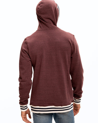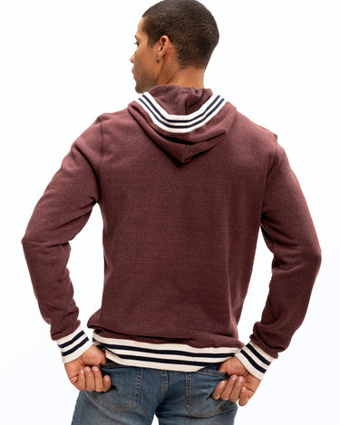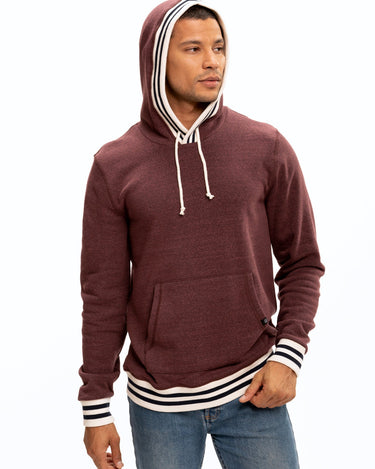 The Tyson Hoodie is a collegiate take on our everyday triblend hoodie. Made from our triblend fleece and trimmed with a heavy weight striped rib, this hoodie takes our best selling basic to the next level.